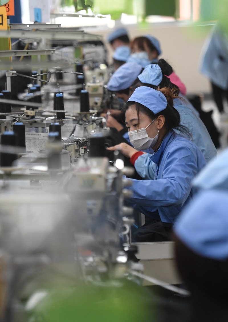 申洲集团是国内纺织服装龙头企业,于2月10日复工。图为申洲集团员工在缝纫车间工作。新华社记者 黄宗治/摄