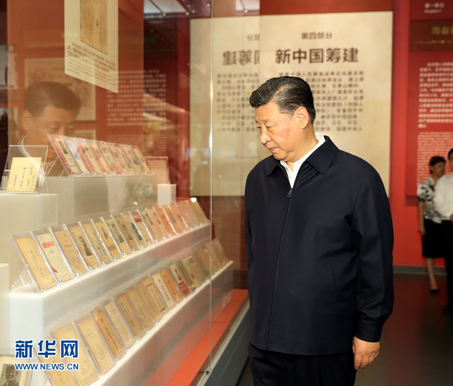 2019年9月12日,习近平总书记在香山革命纪念馆参观《为新中国奠基》主题展览。 新华社记者 黄敬文/摄