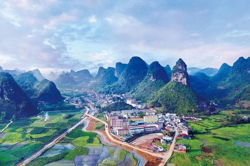 地处桂北的融安县泗顶镇原来因地处大山深处,交通不便,基础设施落后。随着脱贫攻坚深入推进,当地村村通上水泥路,家家喝上安全饮用水,基础设施得到改善,当地群众在扶贫政策的扶持下全力奔小康。图为柳州市融安县泗顶镇。人民图片供图 韦荣军/摄
