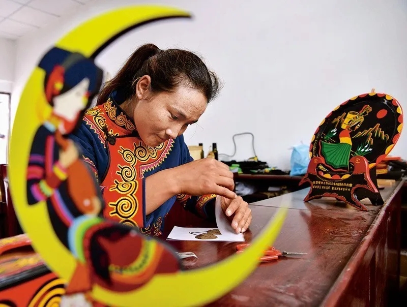 发展文创产业,巩固脱贫成果。图为2019年6月27日,凉山州普格县螺髻山镇德育村的电商产品展览室中,村民吉好莫友作正在制作植物标本。何海洋/摄