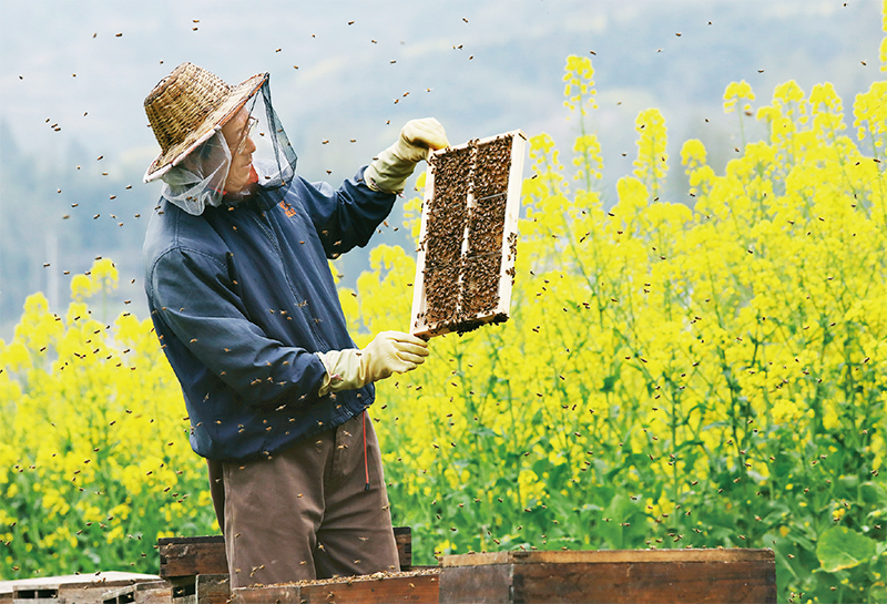 发展产业是实现脱贫的根本之策。要因地制宜,把培育产业作为推动脱贫攻坚的根本出路,强化稳定增收帮扶措施。图为2020年3月8日,在重庆市梁平区石安镇联丰村七组,蜂农正在油菜田边放养蜜蜂。中新社记者 刘辉/摄