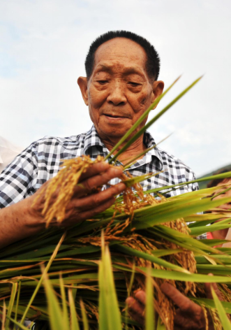 袁隆平一生致力于杂交水稻技术的研究、应用与推广,创建了超级杂交稻技术体系,为我国粮食安全、农业科学发展和世界粮食供给作出杰出贡献,使我国杂交水稻研究始终居世界领先水平。2019年,袁隆平被授予“共和国勋章”。图为2013年8月19日,袁隆平在广西桂林市灌阳县查看水稻生长情况。新华社记者 陆波岸/摄