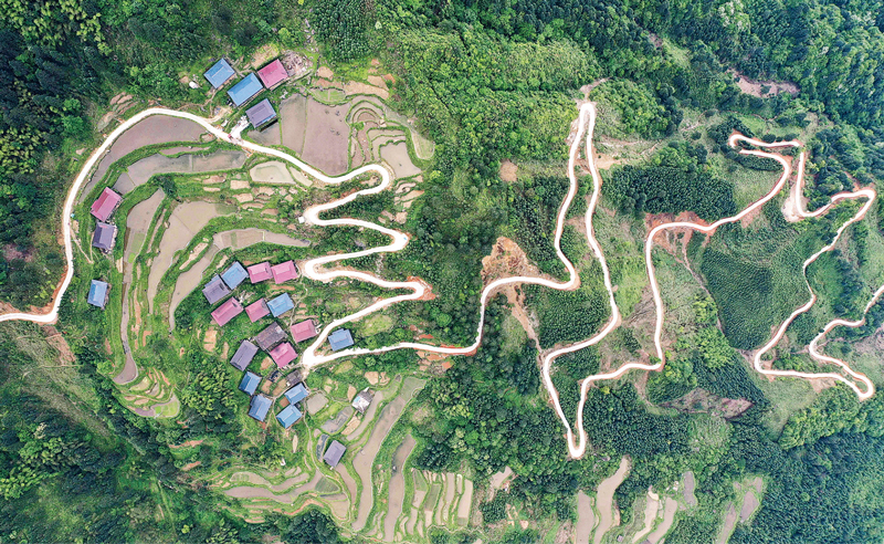 道路通,百业兴。交通扶贫是贫困地区破解经济社会发展瓶颈的关键。图为2020年3月19日,重庆市梁平区福禄镇乐园村,新修的水泥公路蜿蜒至山区农家,带动当地农民发展产业增收脱贫。人民图片 高小华/摄