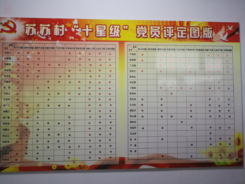 苏苏村党支部书记齐更春说,“开展‘十星党员’评定等工作之后,党员的意识提高了,组织性更强了”。