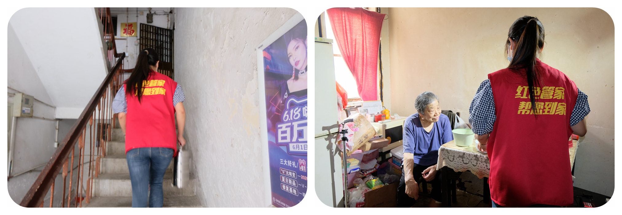 图为社区志愿者将“爱心午餐”点对点地送到每位吃饭有困难的老人手中。