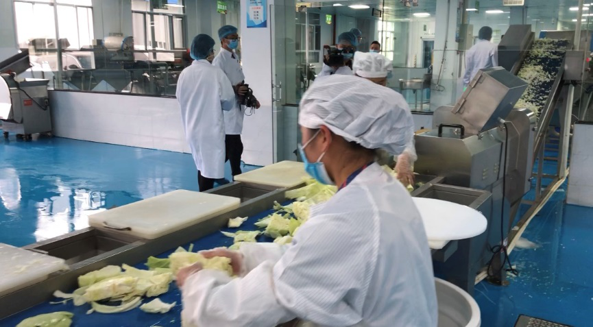 供应学生营养餐的毕节农商联动公司十分注重规范蔬菜的清洗、加工环节 求是记者 李露倩/摄