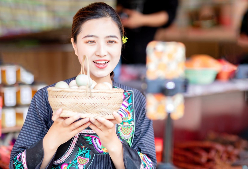 1996年出生于湘西土家族苗族自治州的施林娇是十八洞村第一代返乡创业的大学生,她尝试以“直播带货”的形式帮助村民销售土鸡蛋,取得了不错的效果。施林娇供图