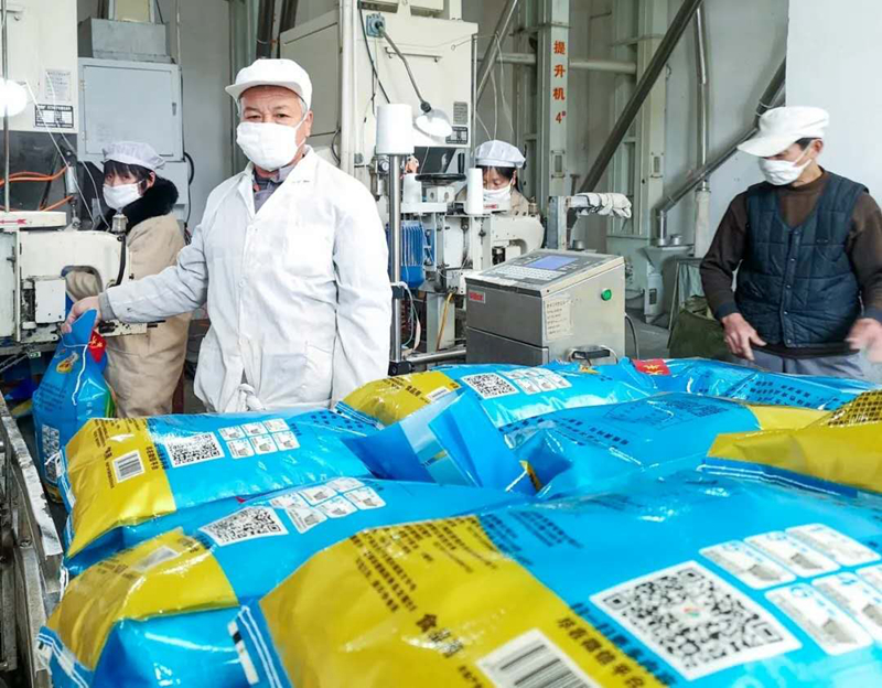 图为2020年1月29日,上海瀛丰五斗生态农业发展有限公司紧急召集车间人员提前返岗,生产车间正在开足马力满负荷生产。 国家粮食和物资储备局供图