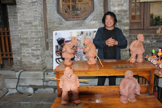 泥塑艺人刘永占和他的作品。 张少义 摄