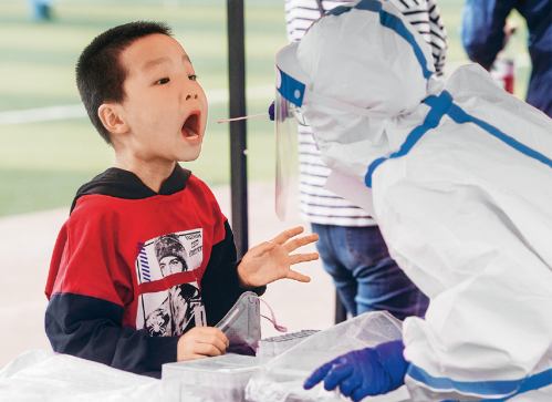 从2020年5月14日0时至6月1日24时,湖北省武汉市近990万人已接受集中核酸检测,发现确诊患者为零。除6岁以下儿童,武汉市民核酸检测已实现“全覆盖”,无症状感染者检出率仅为0.303/万,全市无症状感染者在人群中占比极低,未发现无症状感染者传染他人的情况。图为5月15日,在武汉东西湖区吴家山第一小学操场检测点,工作人员对市民进行核酸检测。新华社记者 肖艺九/摄