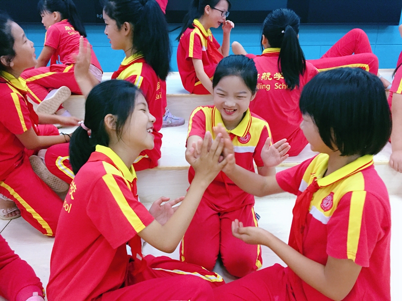 祁东启航学校留守儿童合唱团的孩子们在排练之余愉快地游戏。启航学校供图