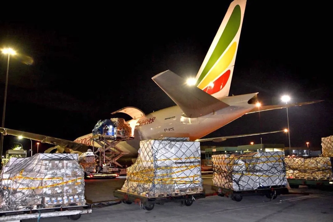 2020年4月14日,中国援助的抗疫物资抵达南非约翰内斯堡奥坦博国际机场。南非政府官员对中国政府和人民在南非抗疫关键时刻给予的宝贵支持和援助表示高度赞赏和衷心感谢。 新华社发(中国驻南非大使馆供图)
