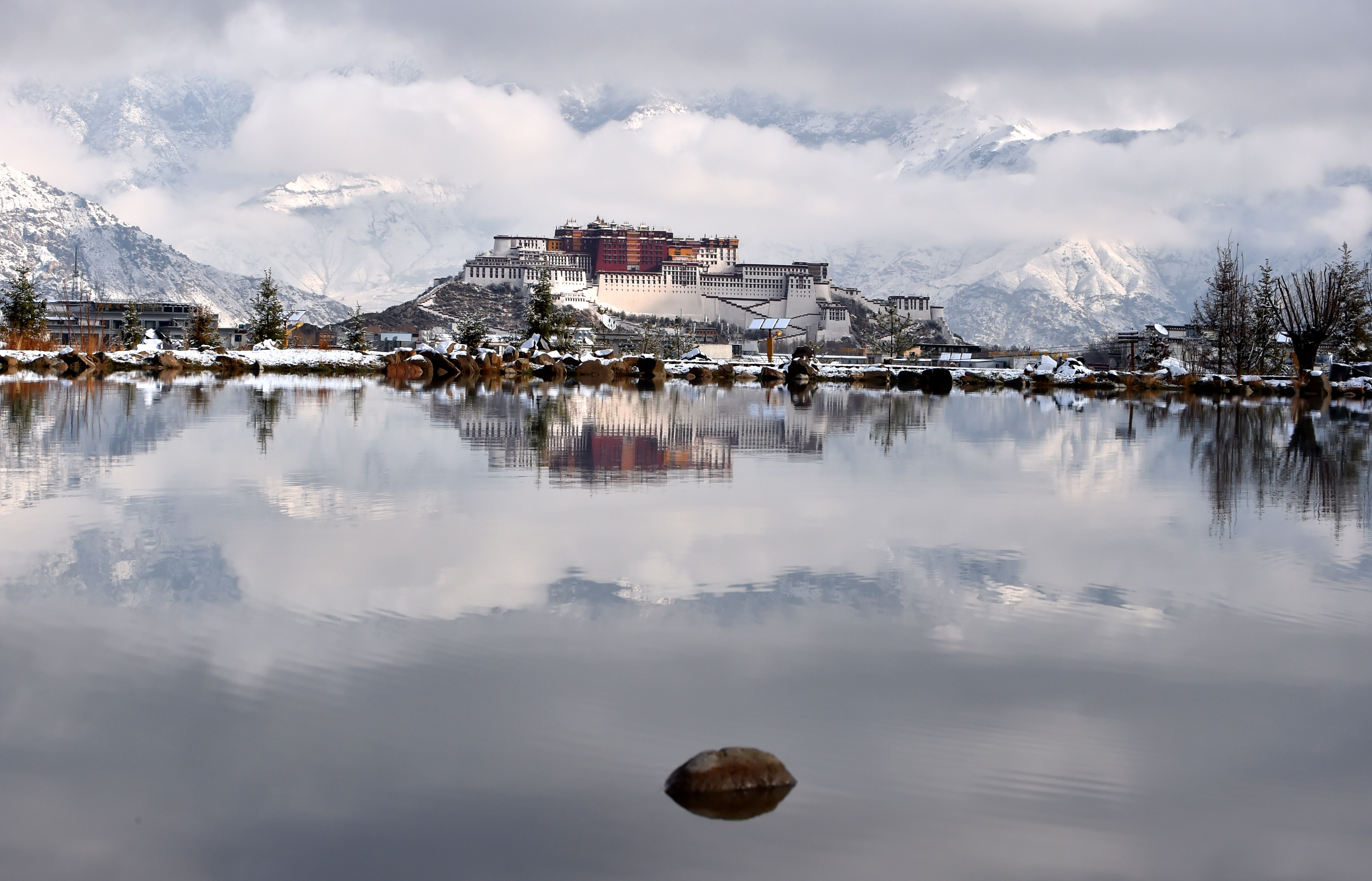 在西藏实行的民族区域自治制度,保障了西藏人民享有充分的宗教信仰自由权利。中央政府先后将西藏的布达拉宫、大昭寺、扎什伦布寺、哲蚌寺、色拉寺、萨迦寺等著名宗教活动场所列为重点文物保护单位,每年都拨出专款用于寺庙的维修、修复和保护。图为2018年3月30日拍摄的雪后的西藏拉萨布达拉宫。新华社记者 觉果/摄