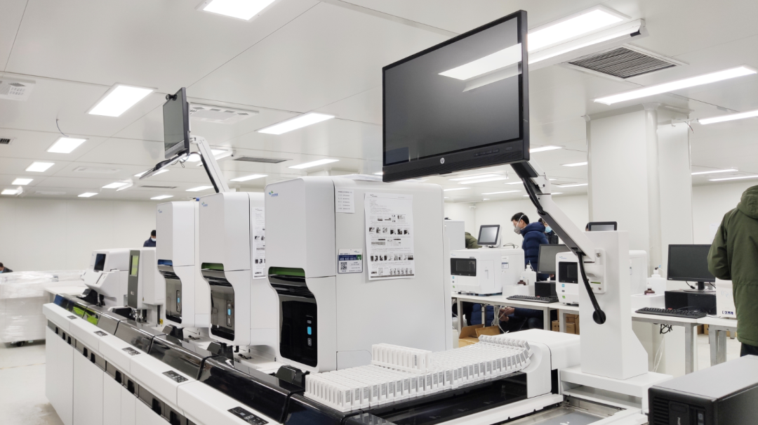 火神山雷神山医院采用更加先进的技术和高于现有传染病医院的防护隔离标准,力求在最短的时间内为患者和医护人员提供更加安全可靠的诊疗环境。图为雷神山医院医技楼的检验科室。中建集团供图