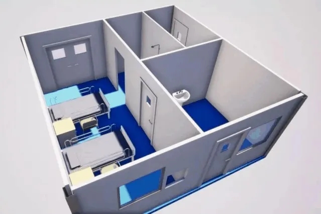 雷神山医院隔离病区病房样板模型。中建集团供图