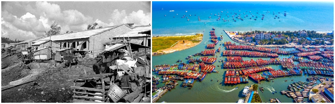 侨港今昔对比。 北海市银海区侨港镇人民政府供图