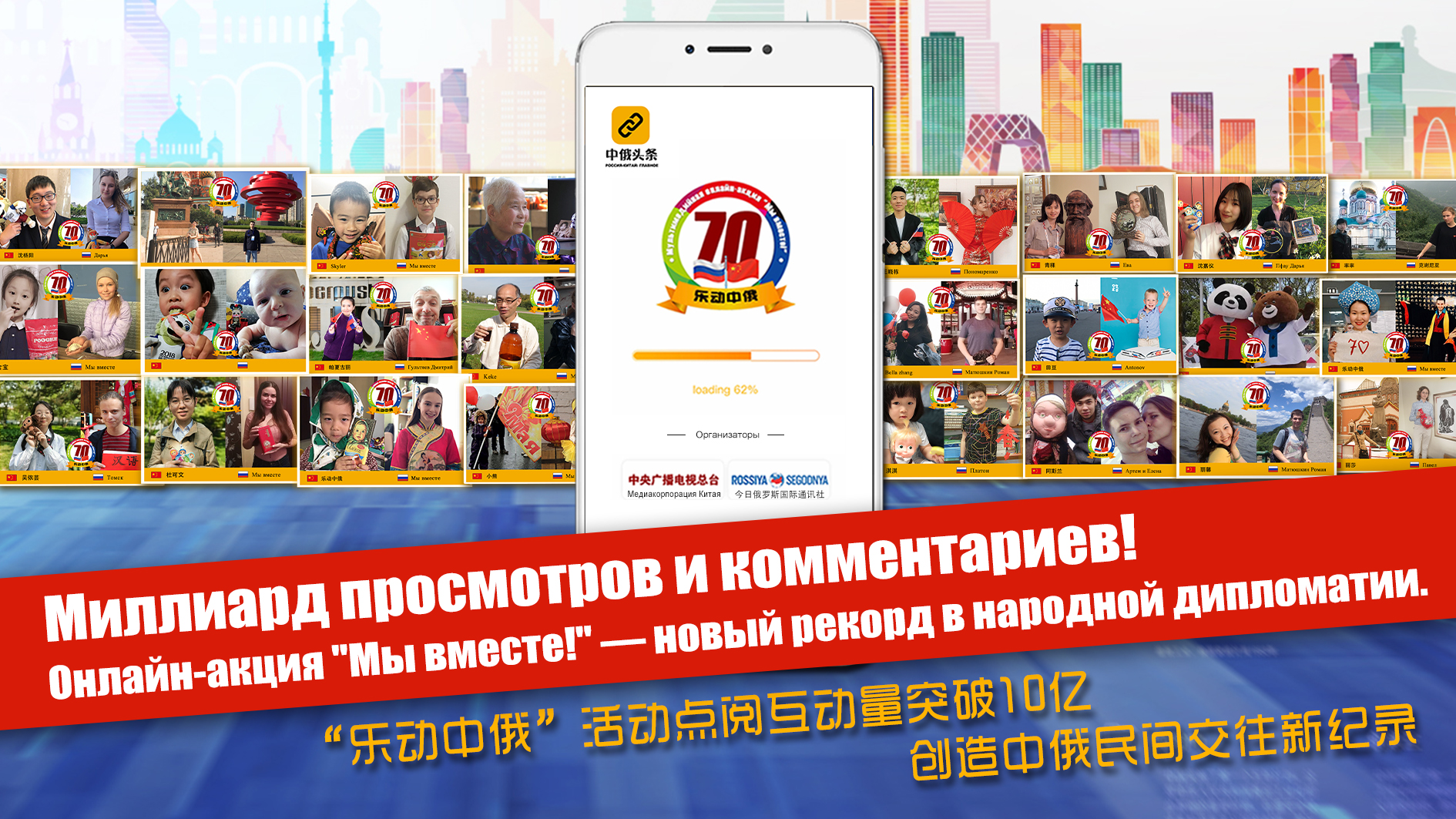 2019年献礼中俄建交70周年,总台与今日俄罗斯国际通讯社联合策划推出的“乐动中俄”在线活动,点阅互动量突破10亿。