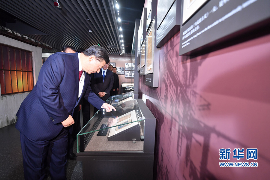 2017年10月31日,中共中央总书记、国家主席、中央军委主席习近平带领中共中央政治局常委李克强、栗战书、汪洋、王沪宁、赵乐际、韩正,瞻仰上海中共一大会址和浙江嘉兴南湖红船。这是31日上午,习近平等在上海中共一大会址纪念馆参观。新华社记者 李涛 摄