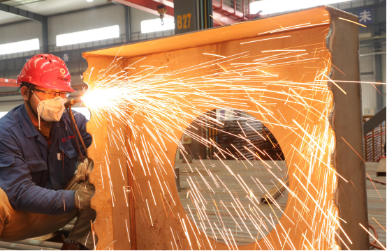 新发展理念把握了发展速度变化、结构优化、动力转换的新特点,指明了高质量发展的新路径。图为2020年5月6日,南通万达锅炉厂的工人在生产车间忙碌,赶制国内外订单产品。视觉江苏网供图 许丛军/摄