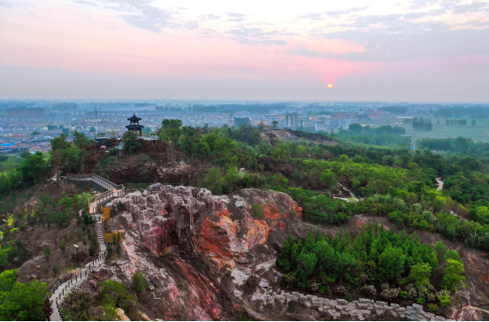 贯彻新发展理念是关系发展全局的一场深刻变革,必须勇于自我革命、勇担时代使命。图为曾经遭到破坏的江苏省宿迁市沭阳县韩山,经过生态修复后成了当地的生态景区,成为群众休闲观光的好去处。视觉江苏网供图 丁华明/摄