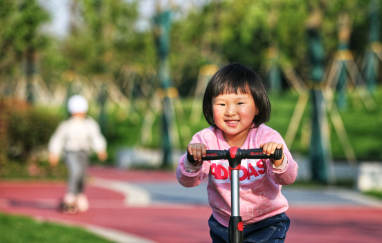 江苏省南京市秦淮区一片曾经的荒地升级为游园。图为2020年4月28日,一个儿童在新建成的游园内开心玩耍。视觉江苏网供图 赵亚玲/摄