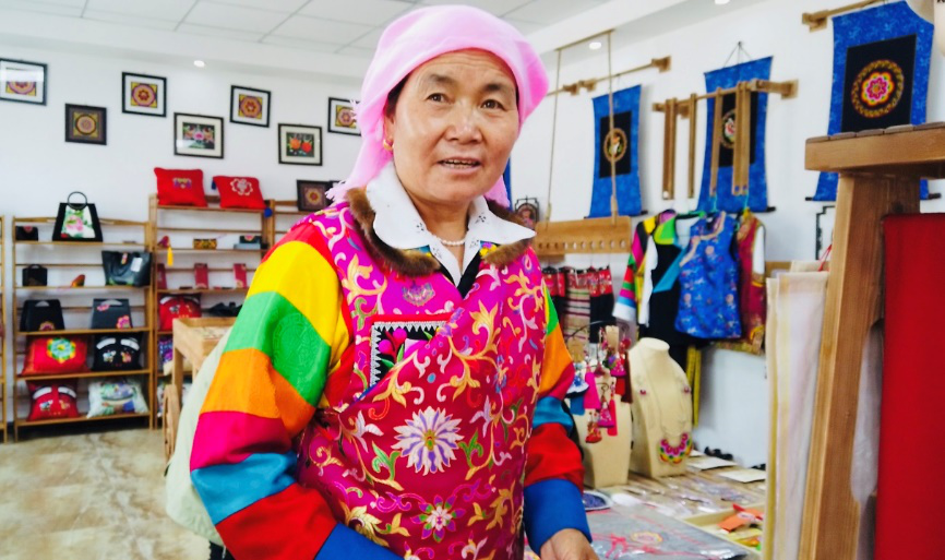 班彦村家家有绣娘,但是怎么让这门手艺成为家家能增收的产业呢?班彦新村建起了盘绣园,探索出了“公司+基地+带头人+农户”的发展模式,在地方党组织和政府的帮扶下,村里心灵手巧的土族绣娘开始接到来自四面八方的订单,有了比较稳定的工资和销售收入,有的还做起了直播。