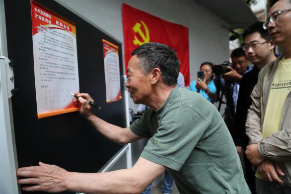 居民在“党建惠家”项目启动仪式上签署居民公约。建国门街道赵家楼社区供图
