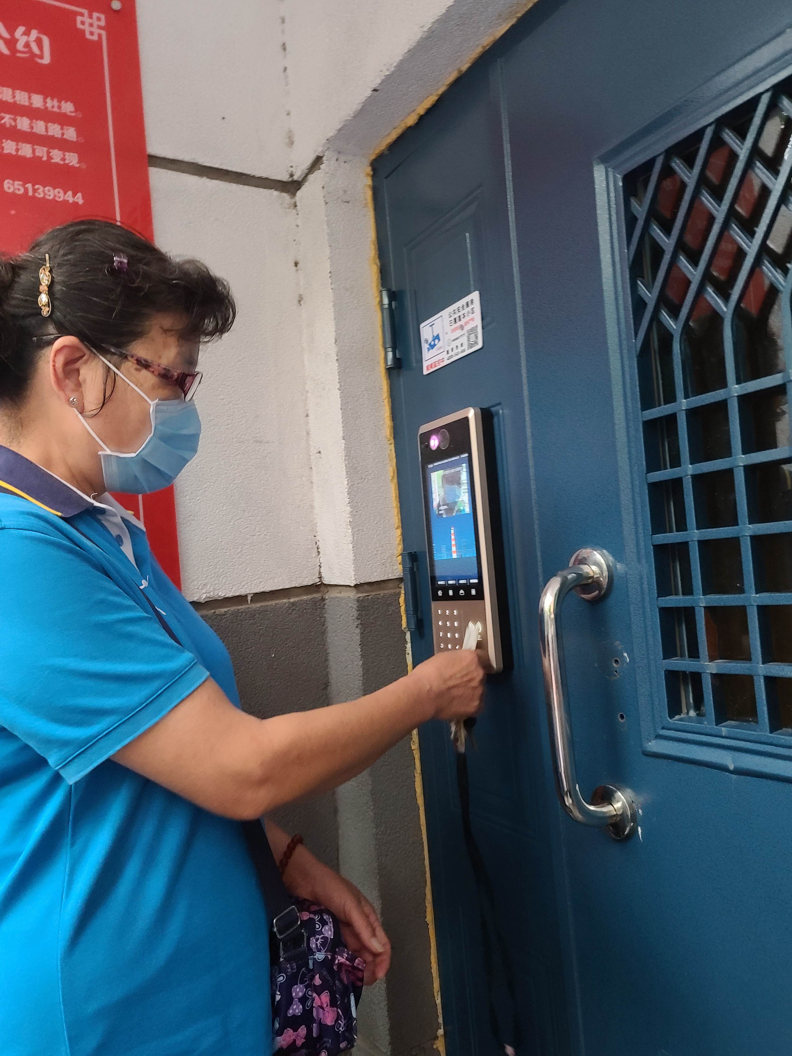 郭砚菊向记者展示先进的门禁系统。求是记者申小提/摄