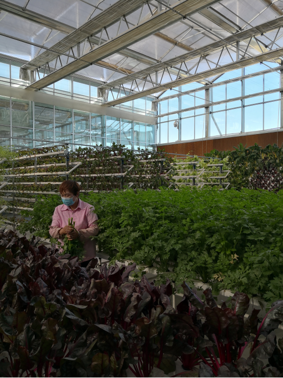 东洞镇四号村村民马会萍,原来收入来源只有自家的玉米地。现在忙完家里的20亩地,再来在联栋温室打打工,整整菜,浇浇水,一天下来也不是特别忙,月收入能有3000元,“种蔬菜比原来种田好多了,这活儿干起来没有在农田累,环境也好多了”,马会萍兴奋地说到。