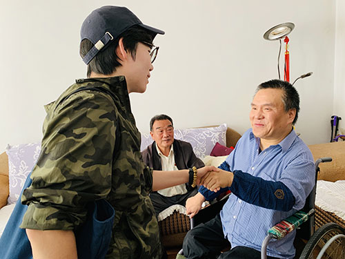 然而,当我们走进他家时,海生一身衣服干净整洁,摇着轮椅到房间门口迎接我们,眼神中满怀期待,精神头也不错。多年的病痛虽然困住了他的身体,但他脸上洋溢的笑容却强烈地感染着我们。