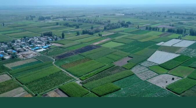 航拍嘉峪关正业农机专业合作社种植的青贮玉米。新甘肃记者 李静/摄