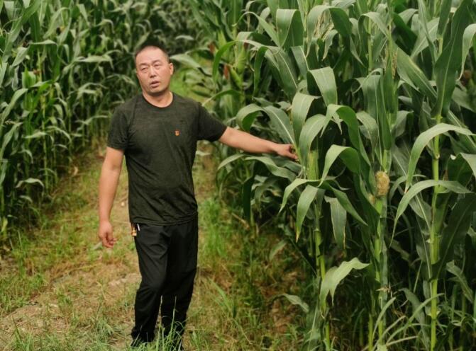 陈军章在农田向记者介绍青贮玉米种植。 求是记者 韩辰/摄