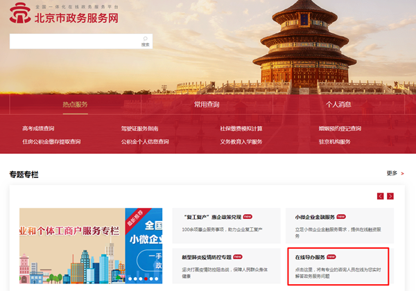 北京市政务服务网首页在线导办服务入口
