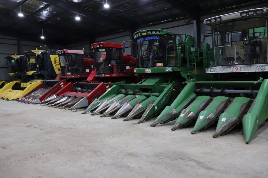 成立于2011年的卢伟农机农民专业合作社,现拥有大型农机具54台套,是一家集农业社会化服务、规模经营和新技术推广应用于一体的新型农业经营主体,图为卢伟合作社的农机仓库。(中共四平市委宣传部供图)