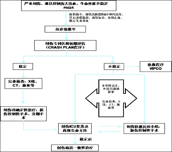 黎润光提出的林芝创伤中心建设方案的部分——严重创伤紧急救治流程图。
