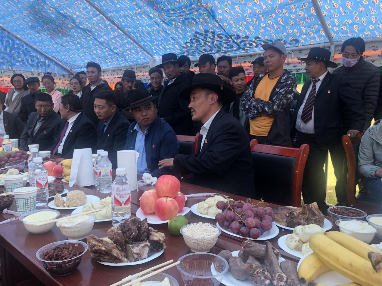 村口绿草滩上,一座临时搭的帐篷里,玉树州委常委、杂多县委书记才旦周正与苏鲁乡山荣村的村民们你一言我一语地话家常呢。不但帐篷里坐满了人,帐篷外也围了一圈的村民,大家对正在讨论的话题显然都十分关心。
