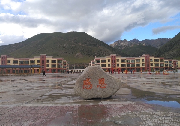 “牧人希望家园”小区广场上的“感恩”石 记者/摄