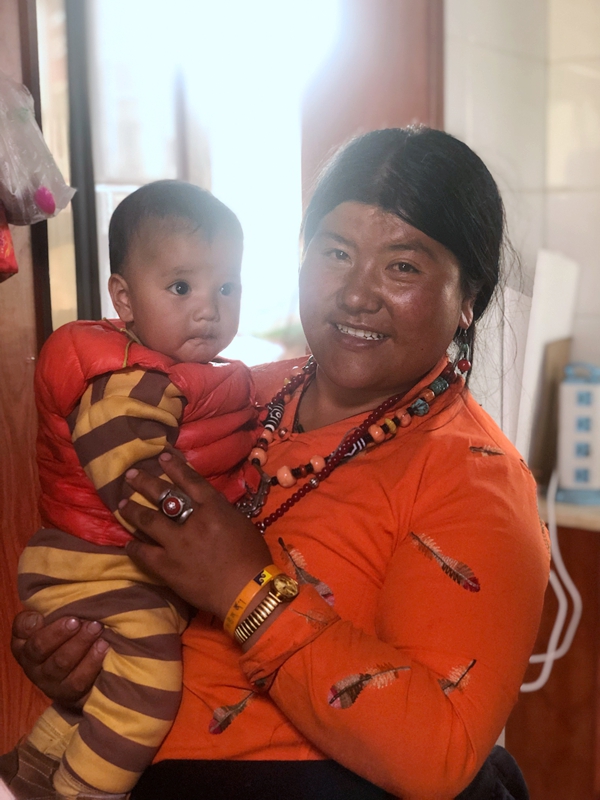 与布雅家斜对门的,是同样从苏鲁乡多晓村易地搬迁来的贫困户江尼一家。一进家门,江尼就迫不及待地带我们参观了厨房、卧室,还有卫生间,并一个劲儿地说怎么也没想到能住上这么好的房子。江尼的妻子把家收拾得井井有条,怀里抱着一个约摸一岁的孩子,小家伙脸上红彤彤的,这一切都告诉我们这是一个幸福而温暖的家。