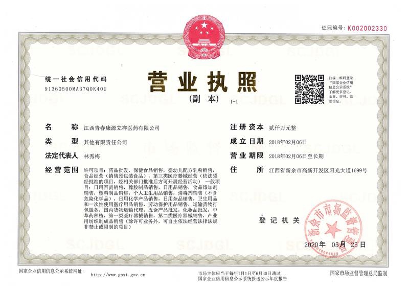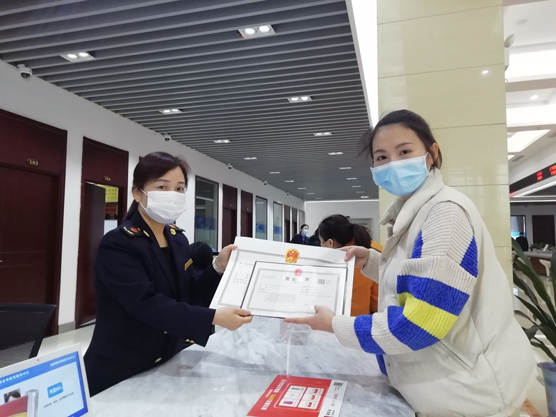 江西青春康源集团有限公司行政主管陈梦领取江西省首张“一照含证”营业执照。新余市市场监管局兰晶供图。