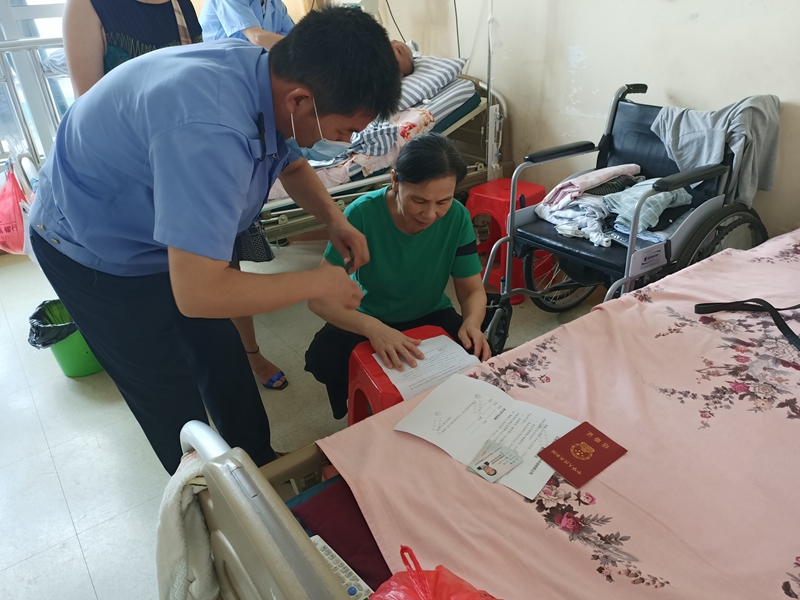 新余市市场监管局行政审批服务窗口工作人员主动到医院为江西信佳房地产资产评估咨询有限公司提供上门服务。新余市市场监管局兰晶供图。