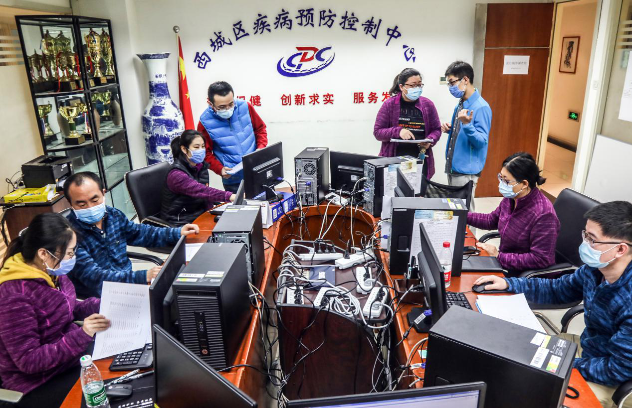 在北京市西城区疾控中心,流行病学调查组工作人员正详细对比数据寻找传染源、分析传播途径。 北京日报社 戴冰/摄
