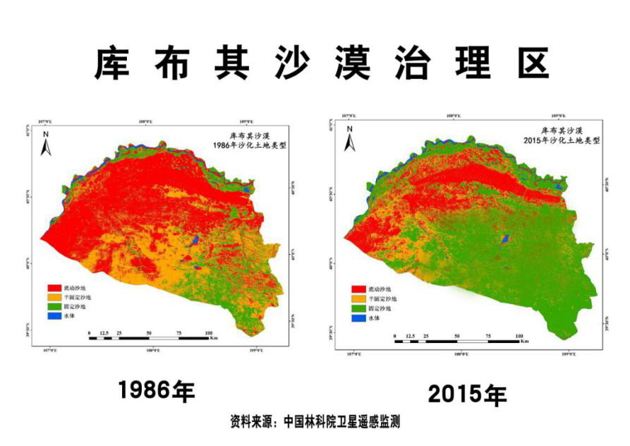 库布其沙漠治理情况对比图 国家林业和草原局供图