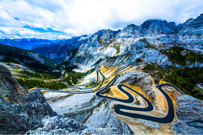图为香格里拉大峡谷巴拉格宗景区内高山和峡谷之间由斯那定珠出资修建的公路。 七林农布/摄