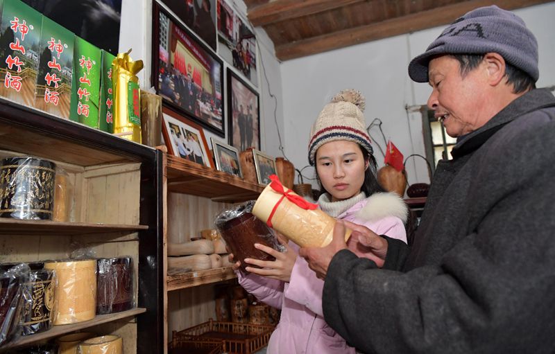 看到这人气越来越旺的村庄,当初不太想让大儿子回来的左秀发,打电话给在外务工的小儿子左春仁,让他回村发展。如今,靠打理家里的糍粑生意、做些竹木工艺品,小儿子一年也能挣10多万元,比在外面打工强。