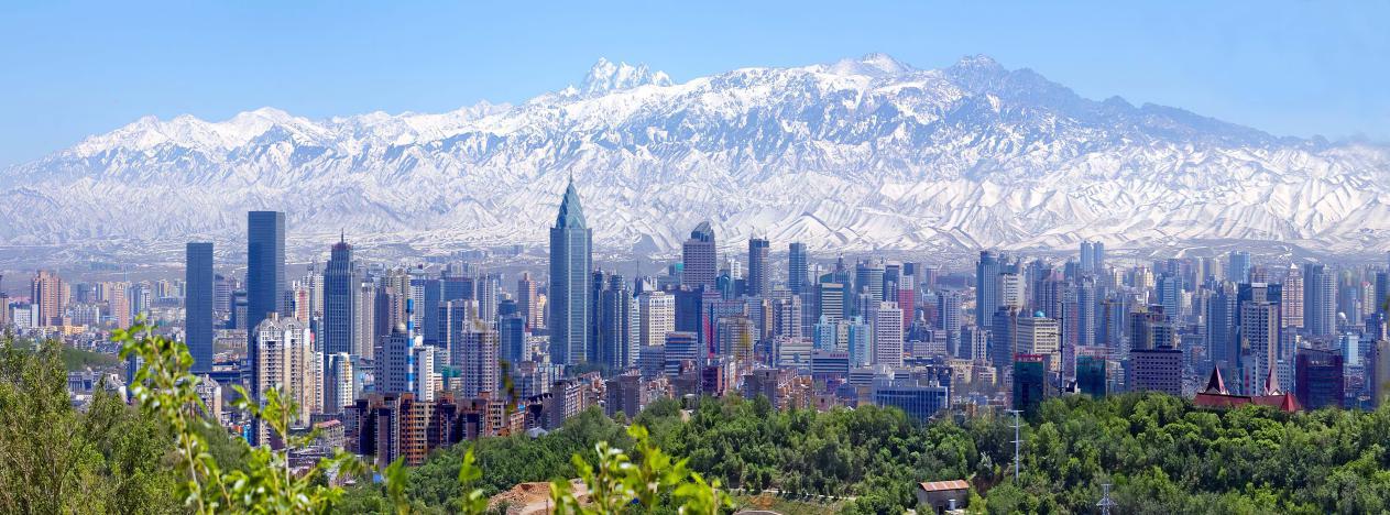 图为雪峰下的乌鲁木齐市。中央统战部供图