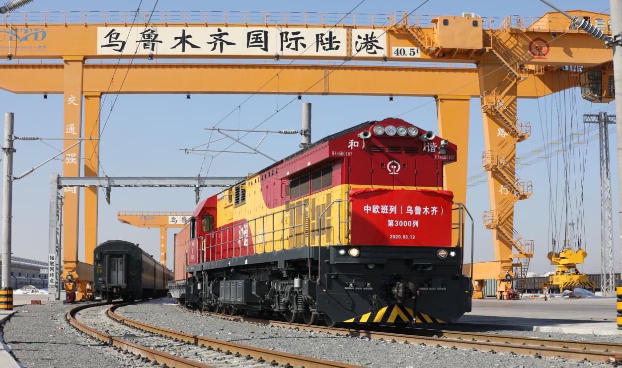 新疆利用区位优势加强丝绸之路经济带建设。图为2020年3月12日,自新疆开出的中欧班列开行突破3000列。中央统战部供图