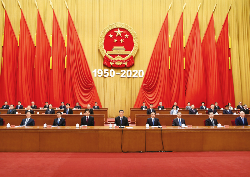 2020年10月23日,纪念中国人民志愿军抗美援朝出国作战70周年大会在北京人民大会堂隆重举行。习近平、李克强、栗战书、汪洋、王沪宁、赵乐际、韩正、王岐山等出席大会。新华社记者 谢环驰/摄