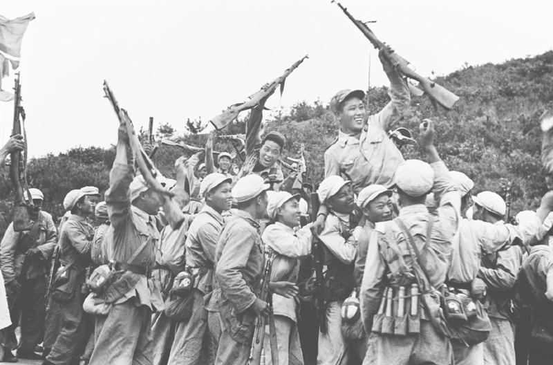 70年前,中国人民志愿军高举保卫和平、反抗侵略的正义旗帜,发扬伟大的爱国主义精神和革命英雄主义精神,同朝鲜人民和军队一道,历经两年零9个月艰苦卓绝的浴血奋战,赢得了抗美援朝战争伟大胜利。图为中国人民志愿军和朝鲜人民军一起欢庆战斗胜利。新华社发