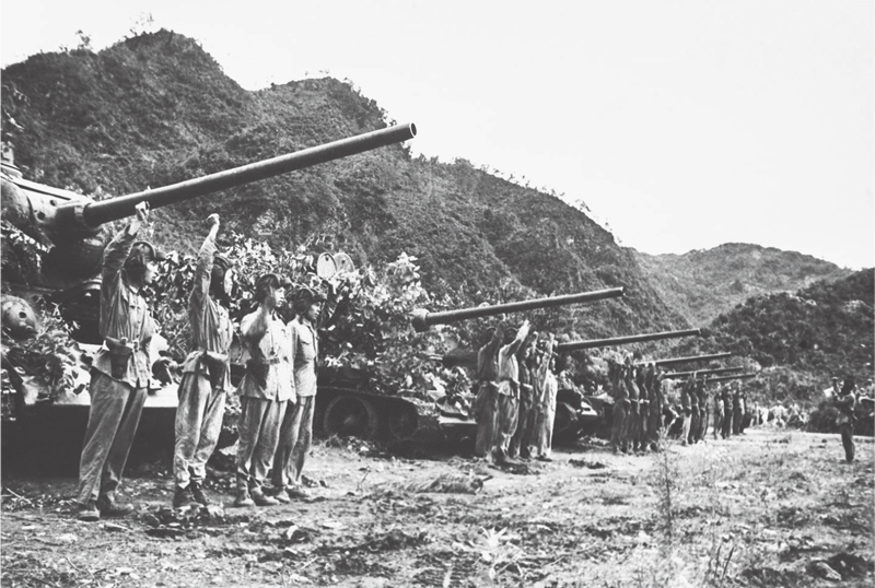 1953年7月,中朝两国军队发动对敌的最后一战——金城战役,歼敌5万余人,迫使侵略者在朝鲜停战协定上签字。图为志愿军某坦克部队在战前宣誓。新华社发