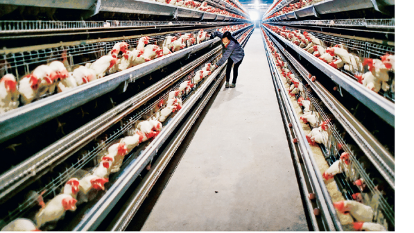 脱贫攻坚,产业是基础,产业兴旺,才是解决农村一切问题的前提。通过因地制宜发展特色产业,贵州毕节市七星关区五里坪村农民逐渐脱贫走上了小康路。图为当地农户在一个属于精准扶贫项目的养鸡场内工作。 新华社记者 欧东衢/摄